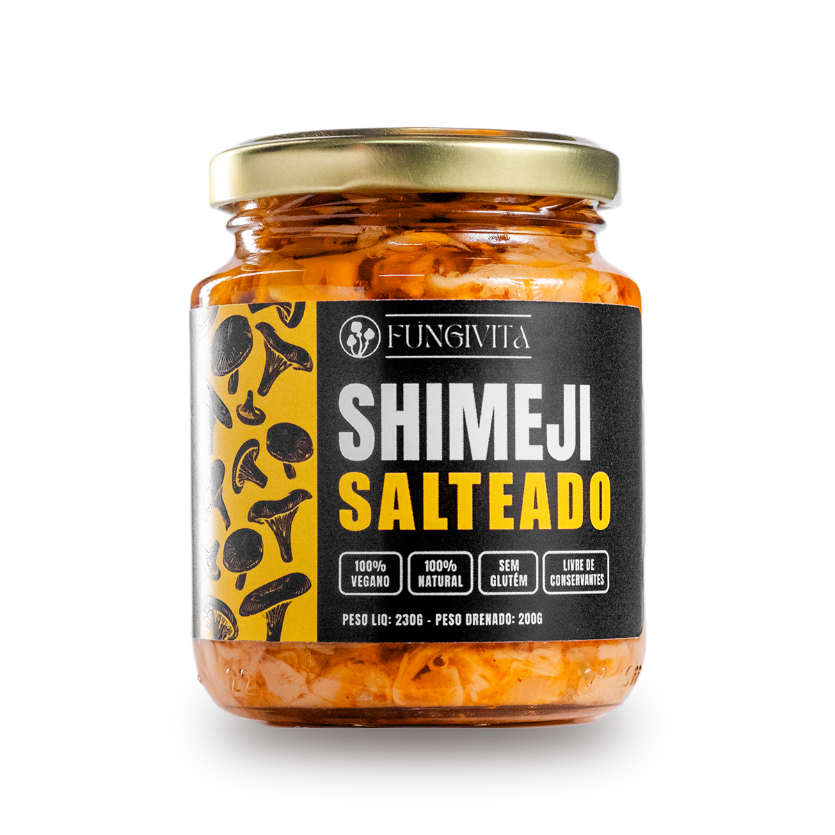 2x Shimeji Salteado (230g): A opção mais pura e versátil da nossa linha. Salteado apenas com azeite, cebola e um toque natural de urucum, ele preserva a textura firme e o sabor original do cogumelo. É o coringa da cozinha: pode ser servido direto do pote, usado para finalizar saladas, rechear tapiocas ou acompanhar pratos rápidos.